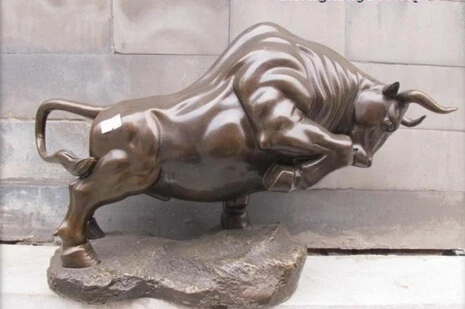 Review bi003819 Chinese 100% Pure Bronze statue Classic Wall Street GOOD LUCK OX Art Sculpture