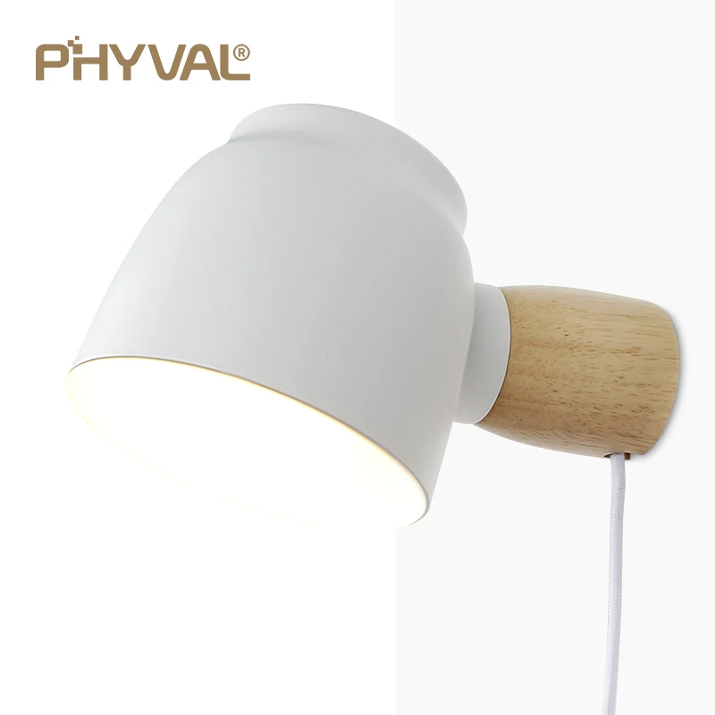 Wall lamp reading light 360° rotatable with switch braided wire plug frosted iron lamp shade solid