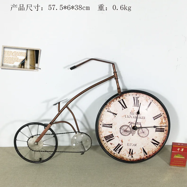 American Retro Industry Creative 3D Metal Bike Hanging Wall Alarm Clock Iron Bicycle Decorative Cra