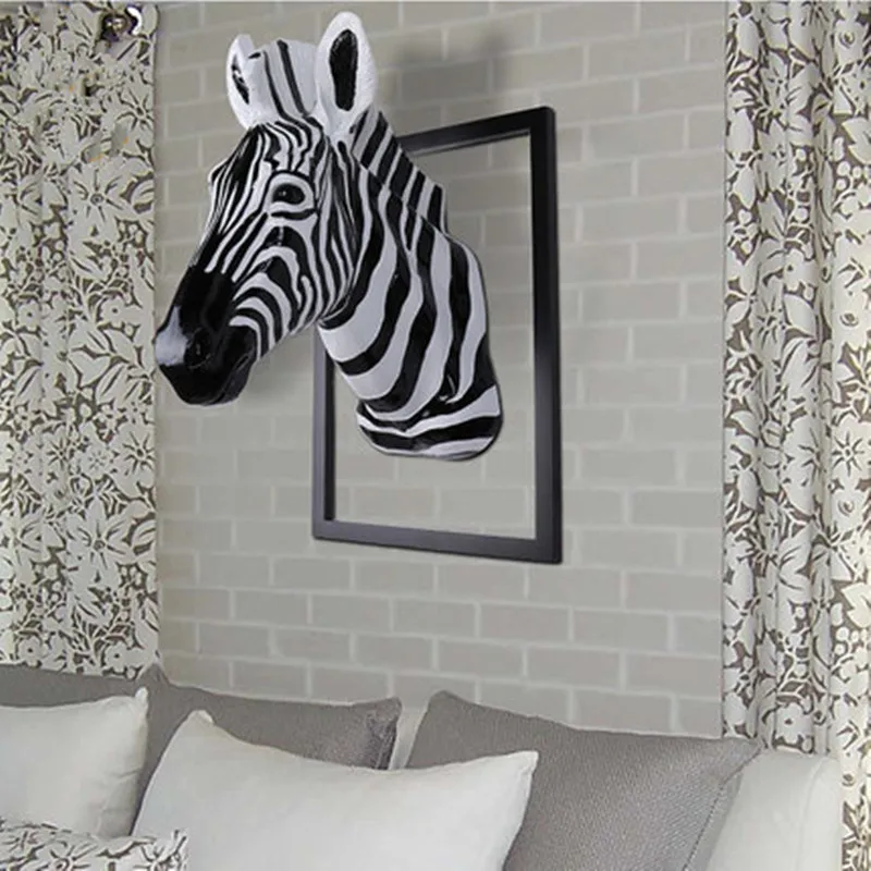 HIGH QUALITY Simulation Zebra Head Decor Deer Head Wall Hanging Restaurant Clothing Store Wall Decor Resin Anima