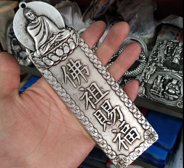 ORIGINAL Archaize white copper Miao silver wall sign relief Buddha's blessing the talisman of exorcism house