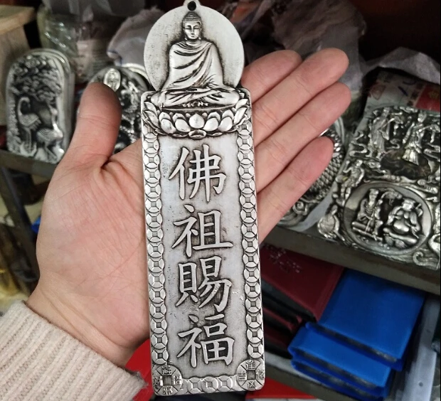 Archaize white copper Miao silver wall sign relief Buddha's blessing the talisman of exorcism house