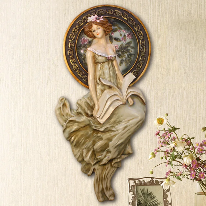 Luxury Living Room Wall Decoration European Resin Ornaments Artwork Statue Corridor 3D Hanging Scul