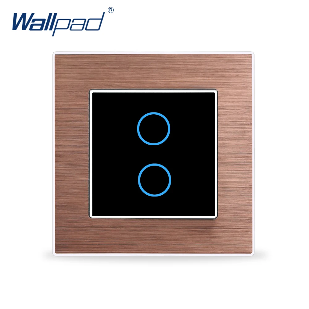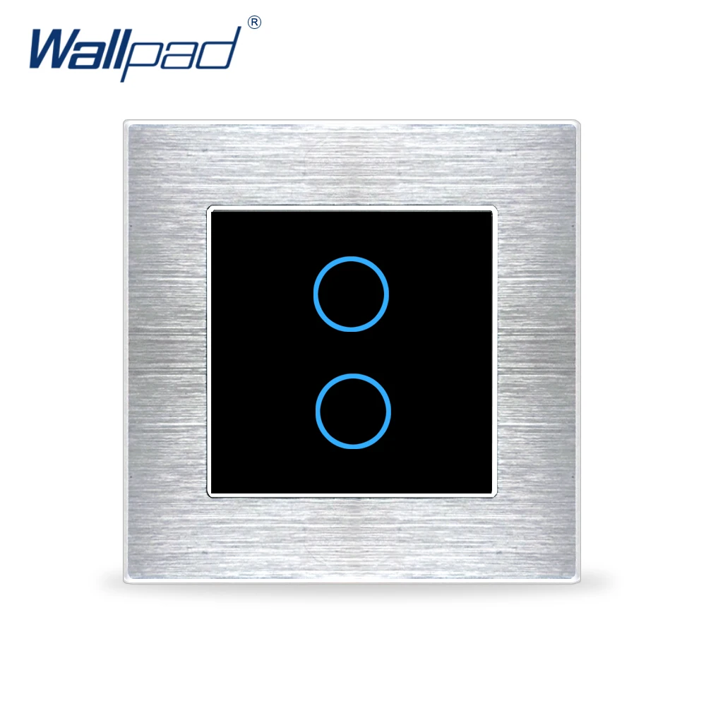 Metal 2 Gang 1 Way Touch Switch Wallpad Luxury Wall Switch Satin Metal Panel Touch Glass Sensor Wal