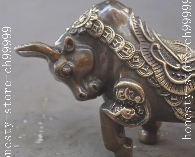 Review 7"chinese fengshui bronze Stock Market Wall Street wealth money Oxen Bull statue