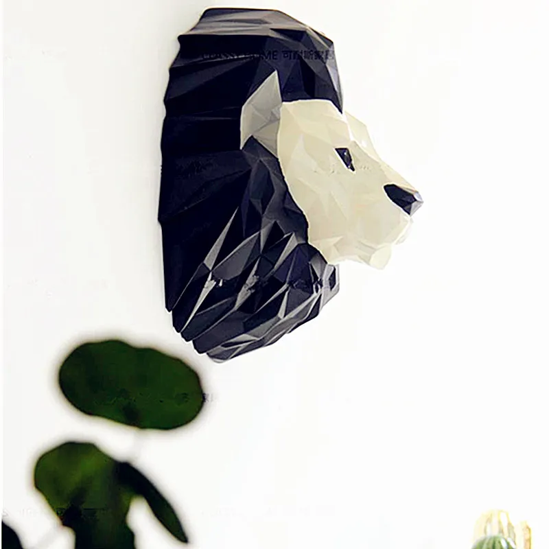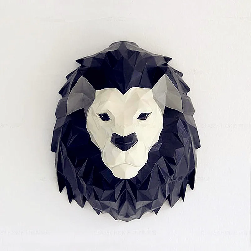 HOT SALE Geometric Aspect Lion Head Statue Simulation Animal Resin Craftwork Solid Wall Hanging Living Room