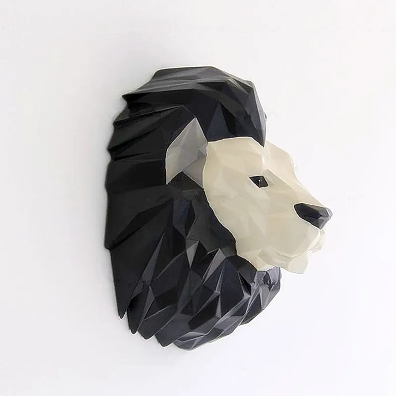 Geometric Aspect Lion Head Statue Simulation Animal Resin Craftwork Solid Wall Hanging Living Room