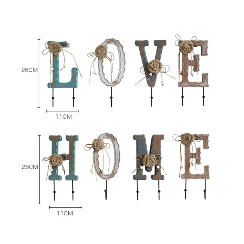 REVIEW TOP SELLER Hot Durable Wood Home/Love Letter Combination Clothes Hanger Home Wall Mounted Hook for Coat Hat FQ