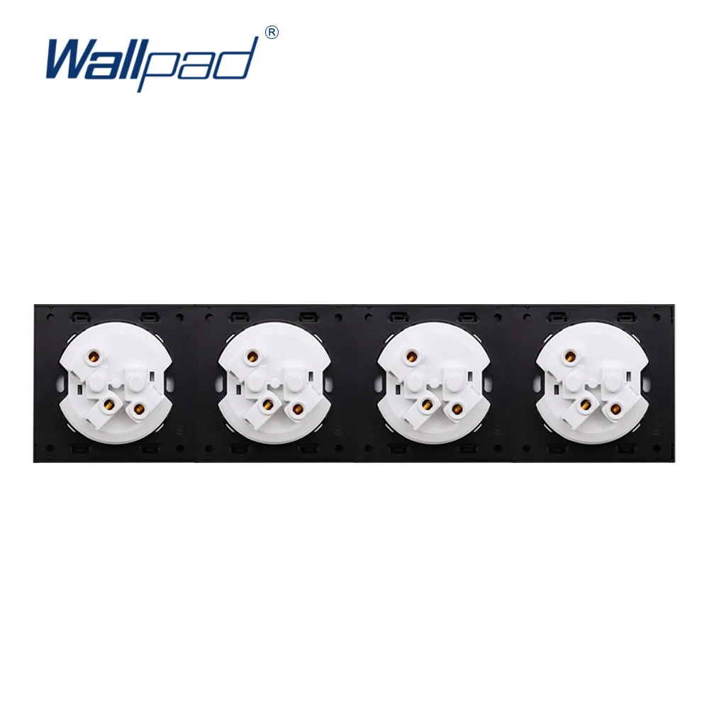 L6 Black Metal Quadruple 4 Way EU German Plug Schuko Power Outlet Wall Socket with Brushed Aluminum