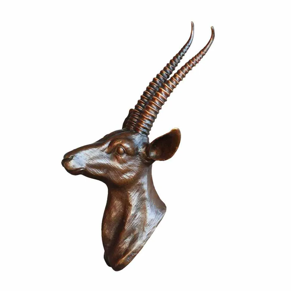 Review Bronze Antelope Head Sculpture Statue Wall Hanging Decor Wildlife Animal Figurines Antique Wall Art